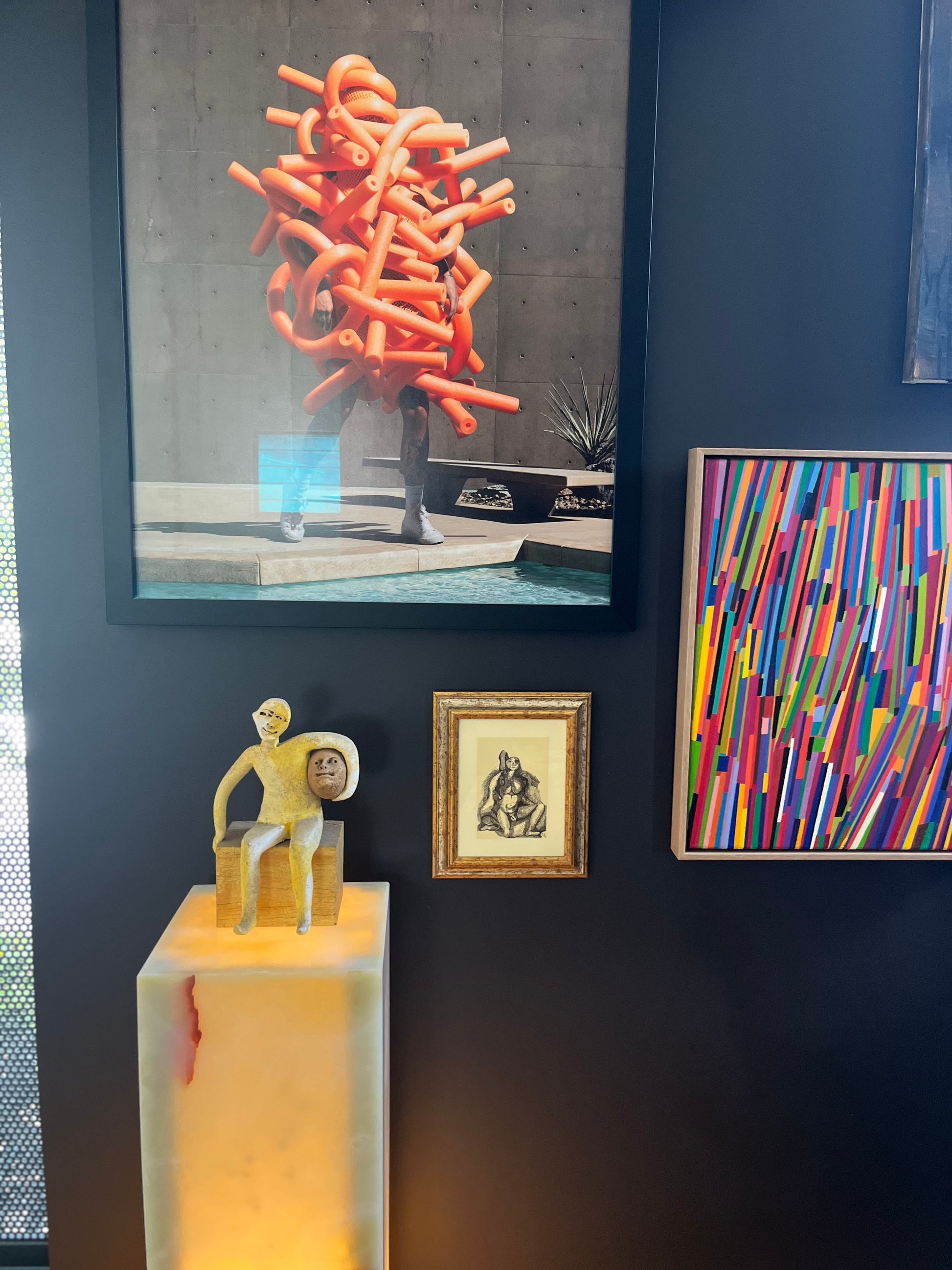 This framed artwork is an expressive ink drawing on paper, created using a cross-hatching technique to build depth and texture.